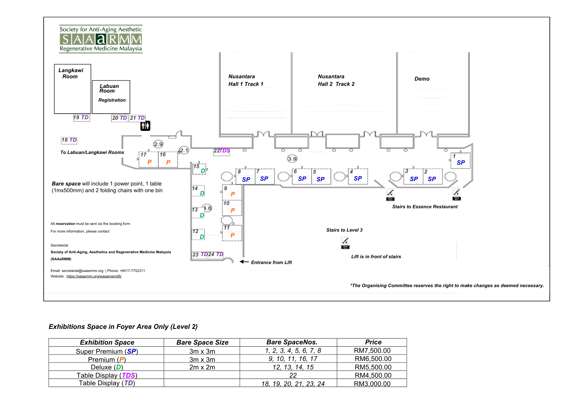 1. Booth space reservation is on a first-come, first-served basis. 2. Full payment is required to secure a booth. Upon pre-confirmation via email, please kindly arrange for payment to be made within 10 days. 3. Failure to confirm within this period will result in the release of the booked space for others to reserve.
